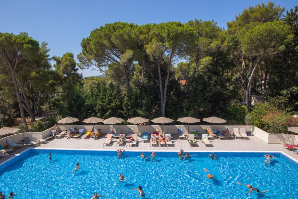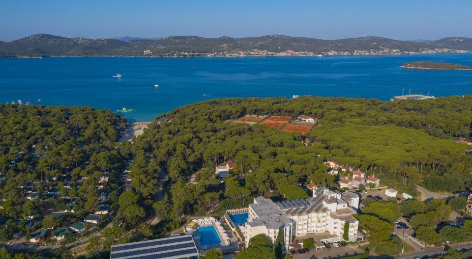 Hotel se nahaja v čudovitem borovem gozdu, le 350 metrov od glavne biograjske plaže Soline in približno 800 metrov od središča mesta.